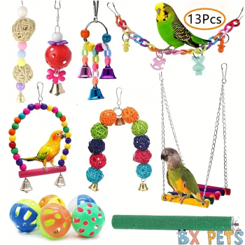 Wholesale 13pcs Vibrant Bird Playset - Durable Chewing Toys with Swing Perch, Hammock Swing & Wooden Perches