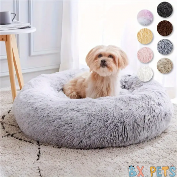 Wholesale Calming Donut Dog Bed - Soft Faux Fur Cat Bed - Machine Washable - Comfortable and Cozy - Paw-Shaped
