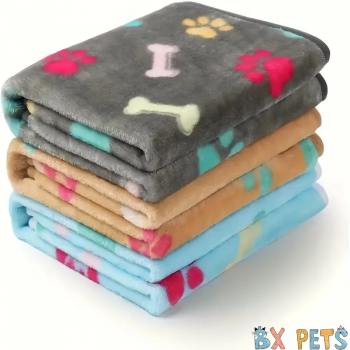 Wholesale 3 packs Soft and Cozy Multi-Color Paw Print Dog Blankets for Small and Medium-Sized Dogs