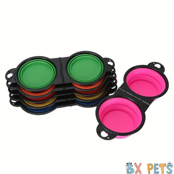 Wholesale Collapsible Silicone Dog Travel Bowls, 2 In 1 Double Bowls Folding TPE Dog Food Bowl Water Bowl