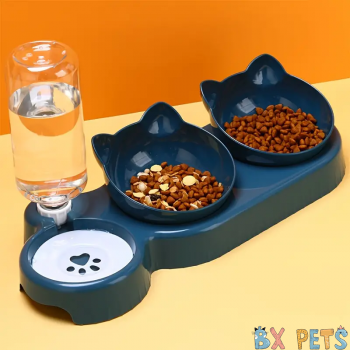 Wholesale Pet Bowls With Water Feeder, 3 In 1 Ear Design Tilted Cat Water And Food Bowl Set With Gravity Water Bottle