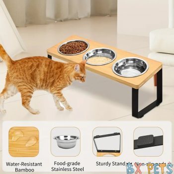 Wholesale Pet Feeding Rack Made Of Iron And Wood Combined With Cat Bowl Rack With Slanted Mouth Anti Overturning