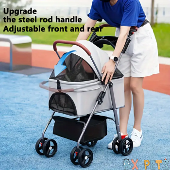 Wholesale Deluxe Pet Stroller Cart - Lightweight, Foldable, Height-Adjustable Handle, 4-Wheel Design, Durable Oxford Fabric