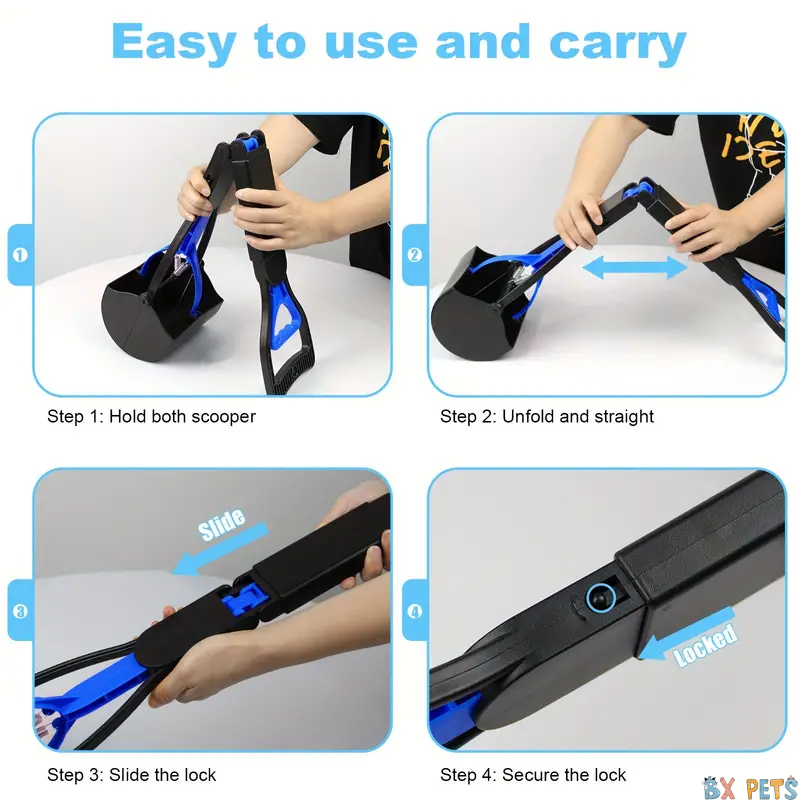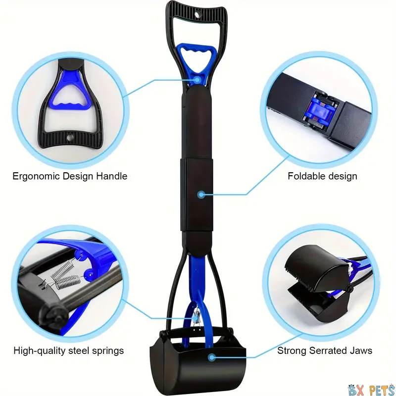 Wholesale 28" Pooper Scooper, Foldable Dog Pooper Scooper with Unbreakable Material and Durable Spring for Grass and Gravel, Blue